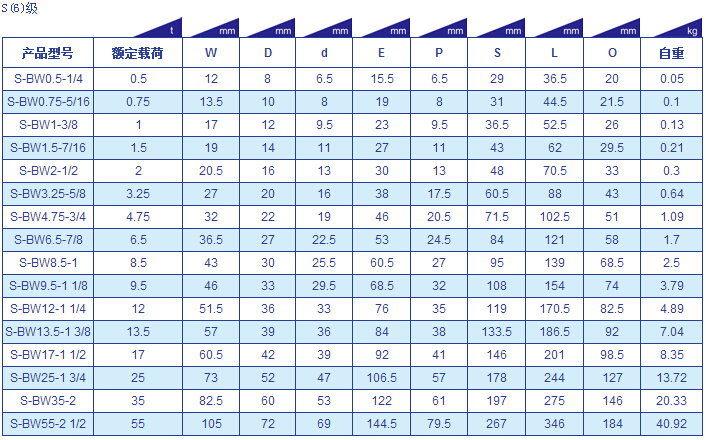 巨力BW型卸扣參數(shù)表