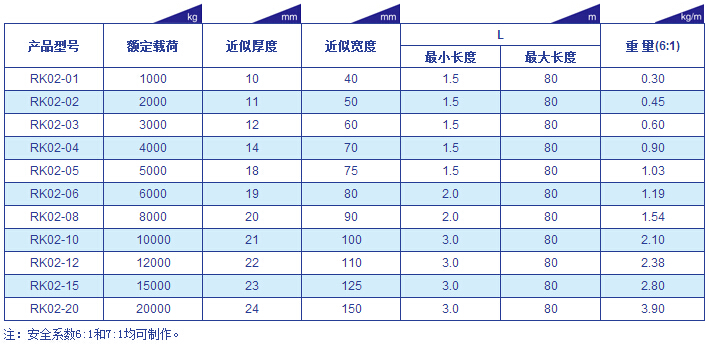 RK02型(防火環(huán)眼型)吊裝帶參數(shù)表