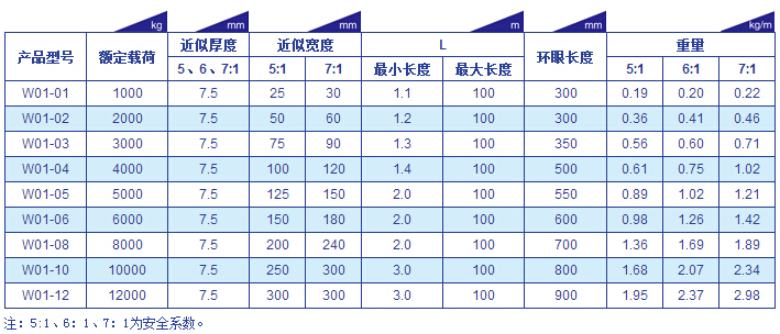 巨力W01型(環眼型)吊裝帶參數表