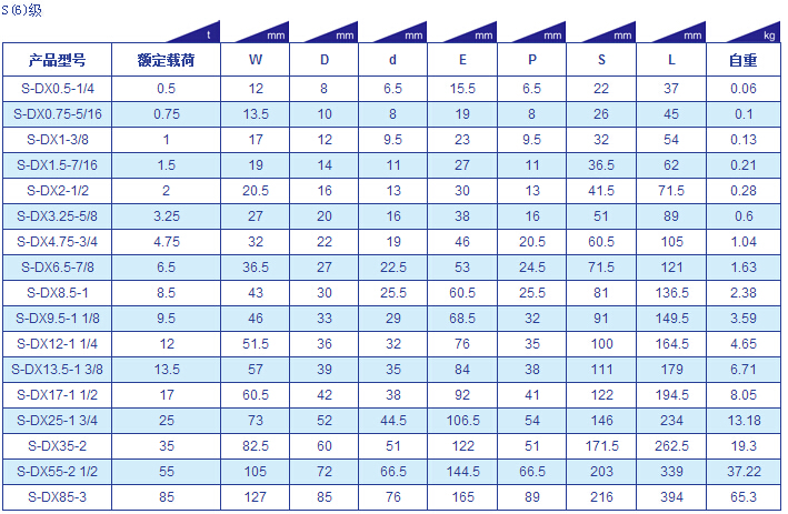 巨力DX型卸扣參數表