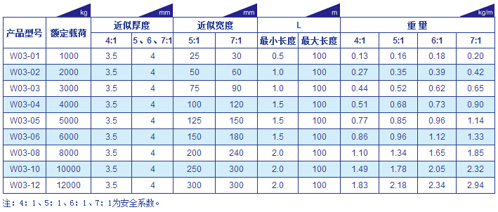 巨力W03型(環形)吊裝帶參數表